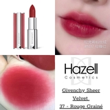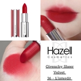 Son Givenchy Le Rouge Sheer Velvet Matte Lipstick L’InterditNew 2021 với chất son mềm, đầy đặn, cho môi luôn căng và có sức hút đặc biệt. Cho đôi môi mềm mướt, sang trọng và xinh xắn.