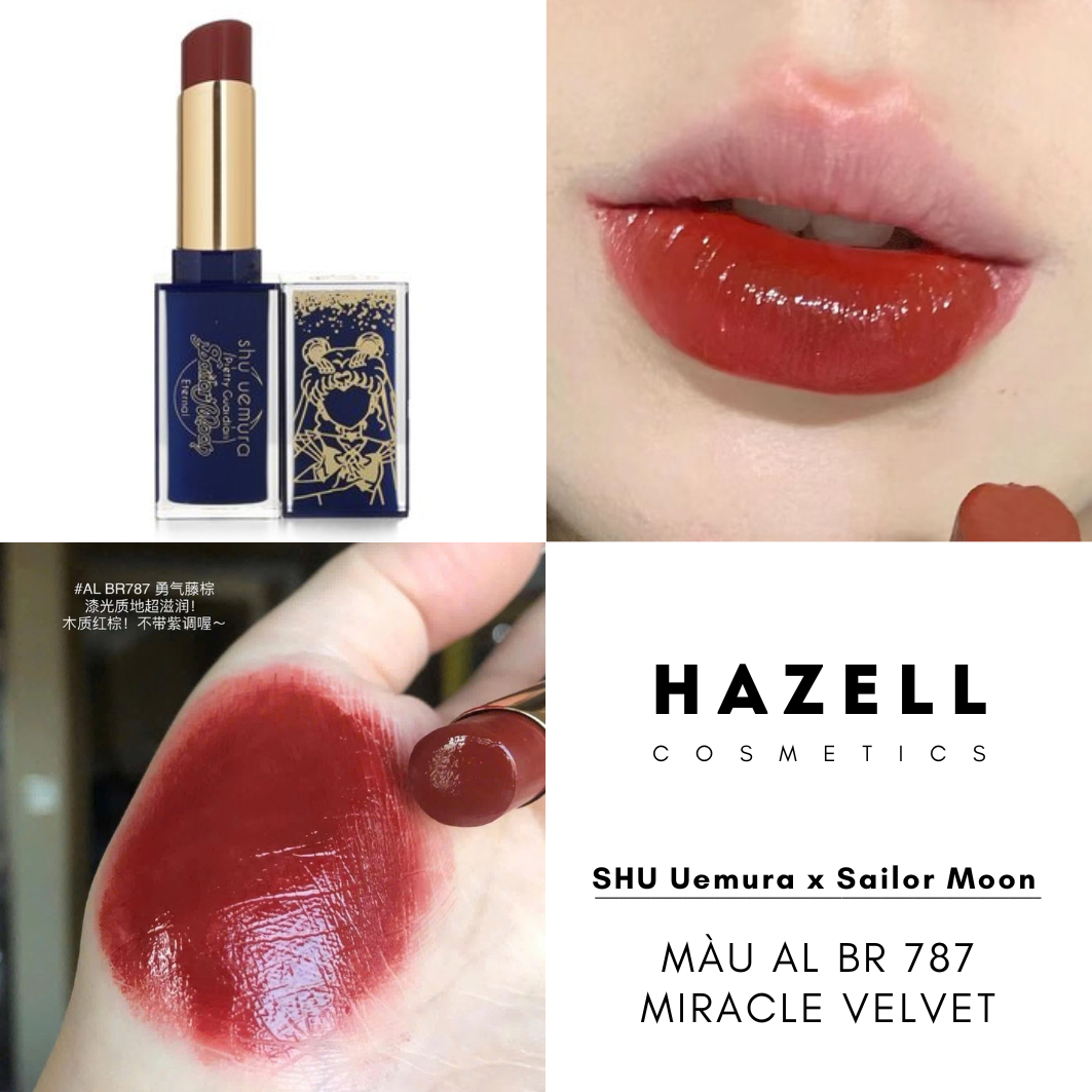- Son Shu Uemura Kinu Amplified Lacquer Sailor Moon Màu AL BR 787 với nhiều dưỡng chất , mượt mà và lâu trôi, được chiết xuất từ dầu camelia nhật bản mang lại kết câu siêu nhẹ, cho phép tạo lớp màu thoải mái và giữ ẩm . Son Shu 787 sắc son đỏ đất siêu quyến rũ cung chất son siêu mịn lên môi hoàn hảo mịn như lụa giúp bạn trở thành tâm điên ngay tức thì.