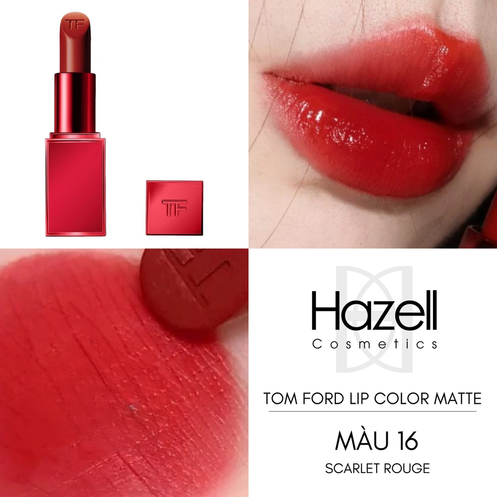Son Tom Ford Love Lip Color Matte Lipstick TF 16 Scarlet Rouge Màu Đỏ Thuần đến từ nhà Tom Ford đã làm ai yêu son đều phải "đắm đuối" ngay từ cái nhìn đầu. Mẫu son này với gam màu thời thượng đang làm mưa làm gió mỗi khi trời chuyển lạnh và cực hợp với những buổi tiệc sang trọng.