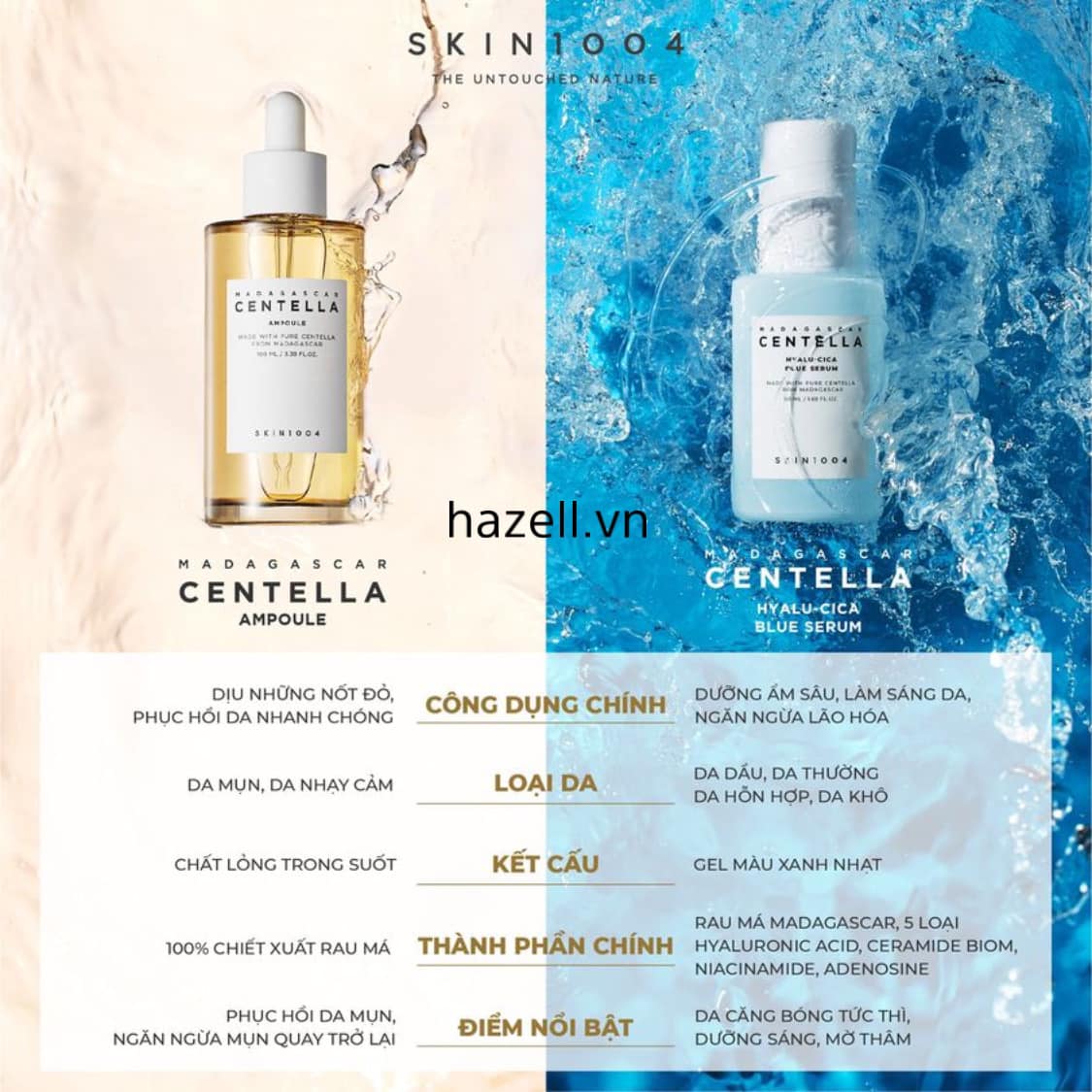 Đã có nhiều bạn đã thắc mắc và tò mò cùng SKIN1004 về sự khác biệt 2 loại tinh chất luôn nằm trong “top Best - Seller”. Liệu dòng sản phẩm nào sẽ phù hợp với làn da của bạn? Madagascar Centella Ampoule và Madagascar Centella Hyalu-cica Blue Serum đều mang những thành phần 100% an toàn, không gây kích ứng cho da đồng thời có thể cải thiện các vấn đề về da cụ thể.