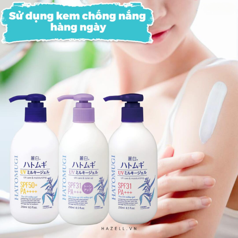 Sữa Dưỡng Thể Hatomugi The UV Milky Gel UV Care & Moisturizing SPF50 PA++++ với thành phần chính là chiết xuất Ý Dĩ, kết hợp cùng các chiết xuất tự nhiên và thành phần dưỡng ẩm Ceramide, Sodium Hyaluronate sẽ giúp cung cấp độ ẩm cho làn da mềm mịn, ngăn ngừa hiện tượng khô ráp. Đồng thời, chỉ số chống nắng SPF50 PA++++ giúp bảo vệ làn da khỏi tác hại của tia UV.