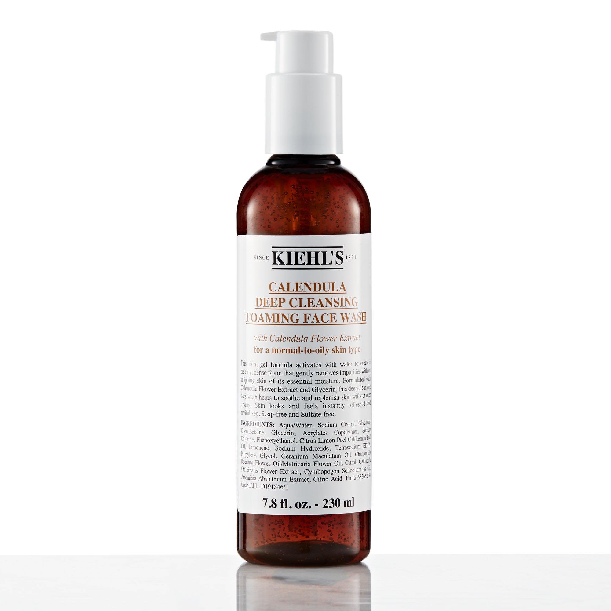 – Thành phần của sữa rửa mặt Kiehl’s Calendula Deep Cleansing Foaming Face Wash vô cùng dịu nhẹ và thiên nhiên với thành phần chính chiết xuất từ hoa cúc.