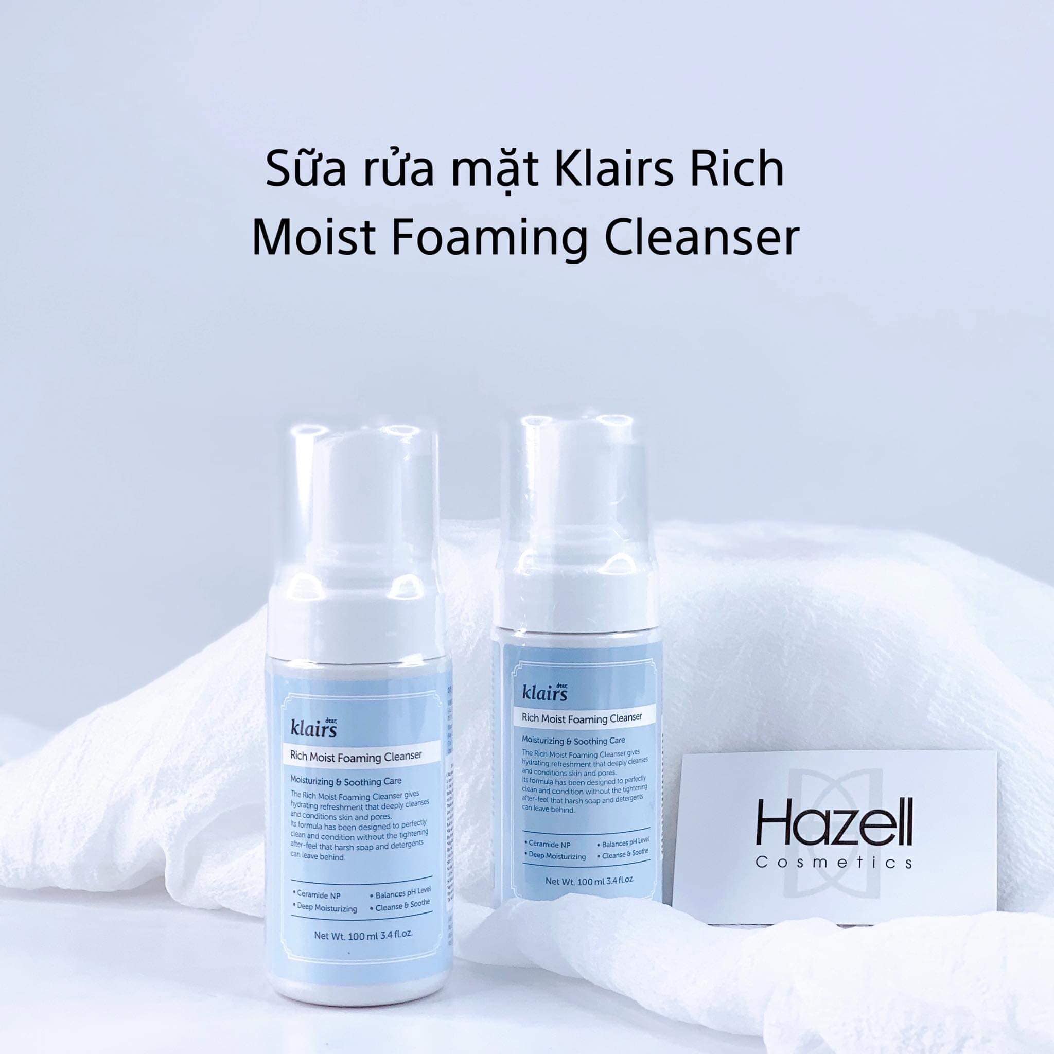 Sữa Rửa Mặt Dạng Bọt Dưỡng Ẩm Da Klairs Rich Moist Foaming Cleanser chứa HA, Ceramide 3 & tinh dầu oliu cùng cùng các thành phần chiết xuất từ tinh dầu thực vật như bưởi, tràm trà, bơ hạt mỡ giúp tăng cường khả năng giữ ẩm cho làn da sau khi sử dụng. Công thức hoạt tính từ Amino Acid, là thành phần có trong Protein và đặc biệt không chứa chất tẩy rửa sẽ làm sạch sâu tận trong lỗ chân lông, cân bằng độ pH da mà không gây nên hiện tượng kích ứng, kể cả làn da nhạy cảm.
