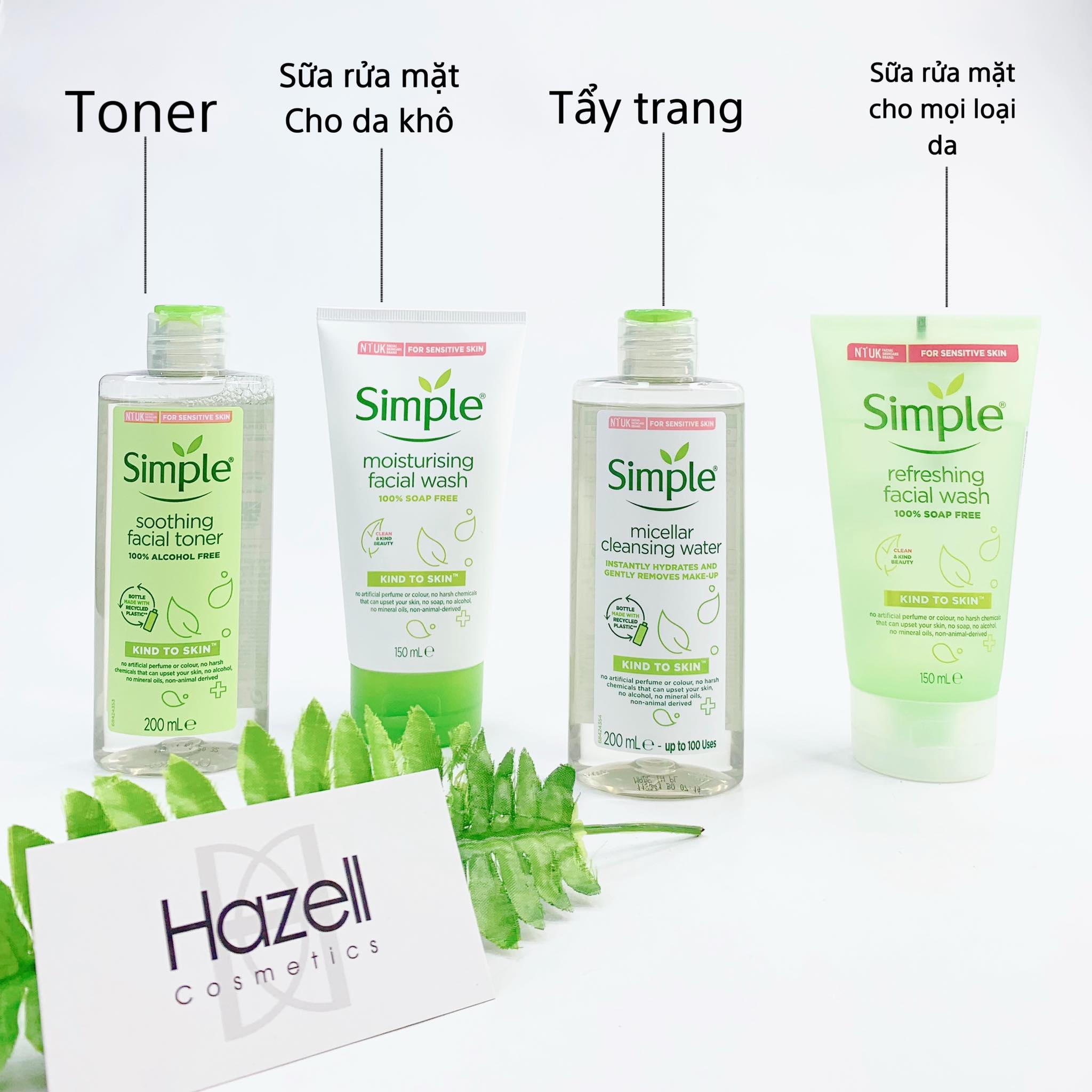 Sữa rửa mặt Simple với thành phần dịu nhẹ từ thiên nhiên , không chứa hương liệu , không chứa các chất phụ gia không cần thiết , an toàn cho làn da nhạy cảm nhất