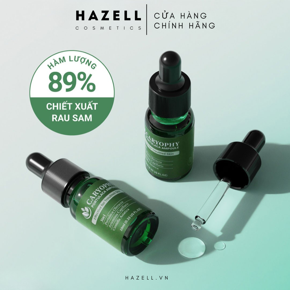Sản phẩm là dòng Serum (Ampoule) bán chạy nhất của Caryophy nhờ khả năng đa năng: trị mụn - mờ thâm - phục hồi. Lọ tinh chất có thiết kế dạng thủy tinh màu xanh lá sẫm đặc trưng giúp bảo quản dưỡng chất tốt hơn. Phần nắp tích hợp đầu bóp (dropper) thông minh, giúp người dùng dễ dàng điều tiết lượng tinh chất lấy ra mỗi lần sử dụng.