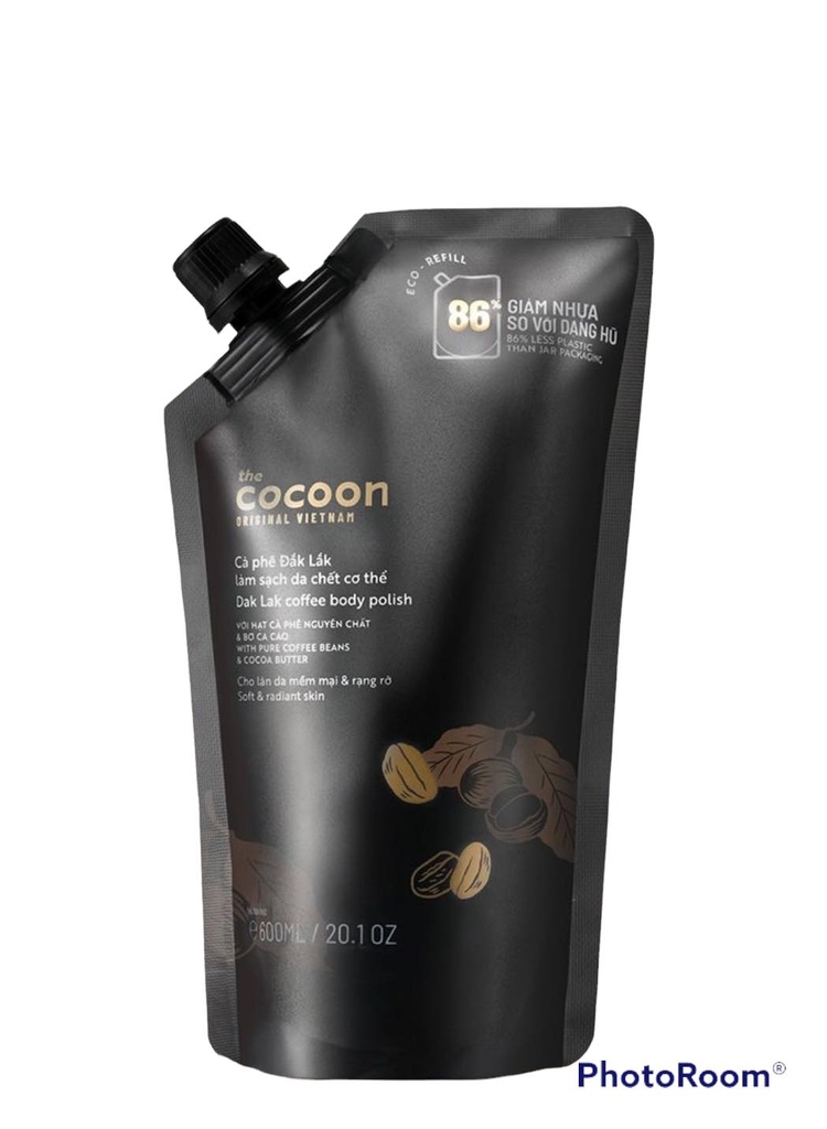 Sản phẩm là sự kết hợp giữa hạt cà phê Đắk Lắk nguyên chất xay nhuyễn, hòa quyện cùng bơ cacao Tiền Giang giúp loại bỏ tế bào chết trên cơ thể hiệu quả, làm đều màu da, mang lại năng lượng, giúp da trở nên mềm mại và rạng rỡ.
