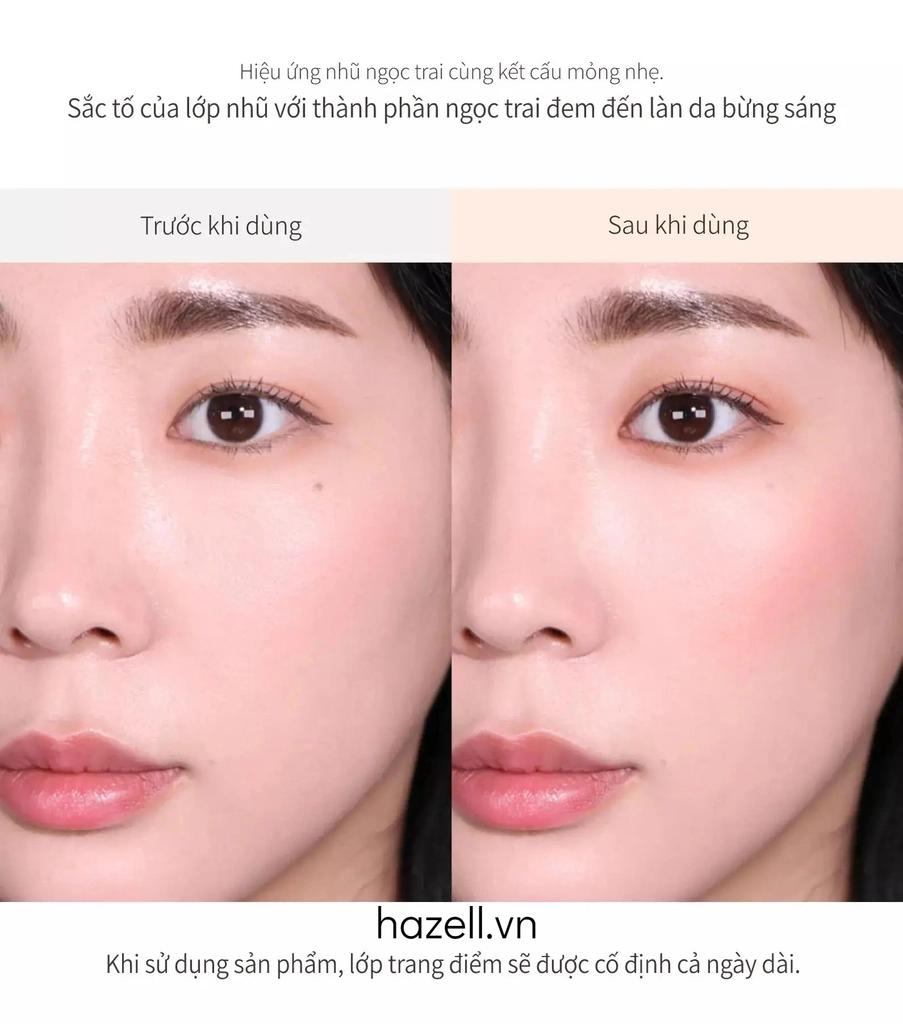 - Nàng có thể dùng cọ hoặc ngón tay để tán đều, lưu ý không nên miết bông, như vậy sẽ vô tình làm trôi đi các bước trang điểm từ trước và kem thấm không hiệu quả.